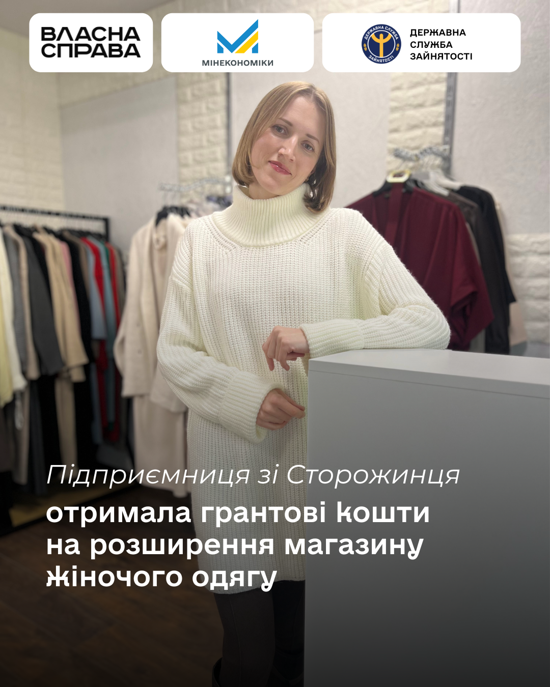 Підприємниця зі Сторожинця отримала грантові кошти на розширення магазину жіночого одягу