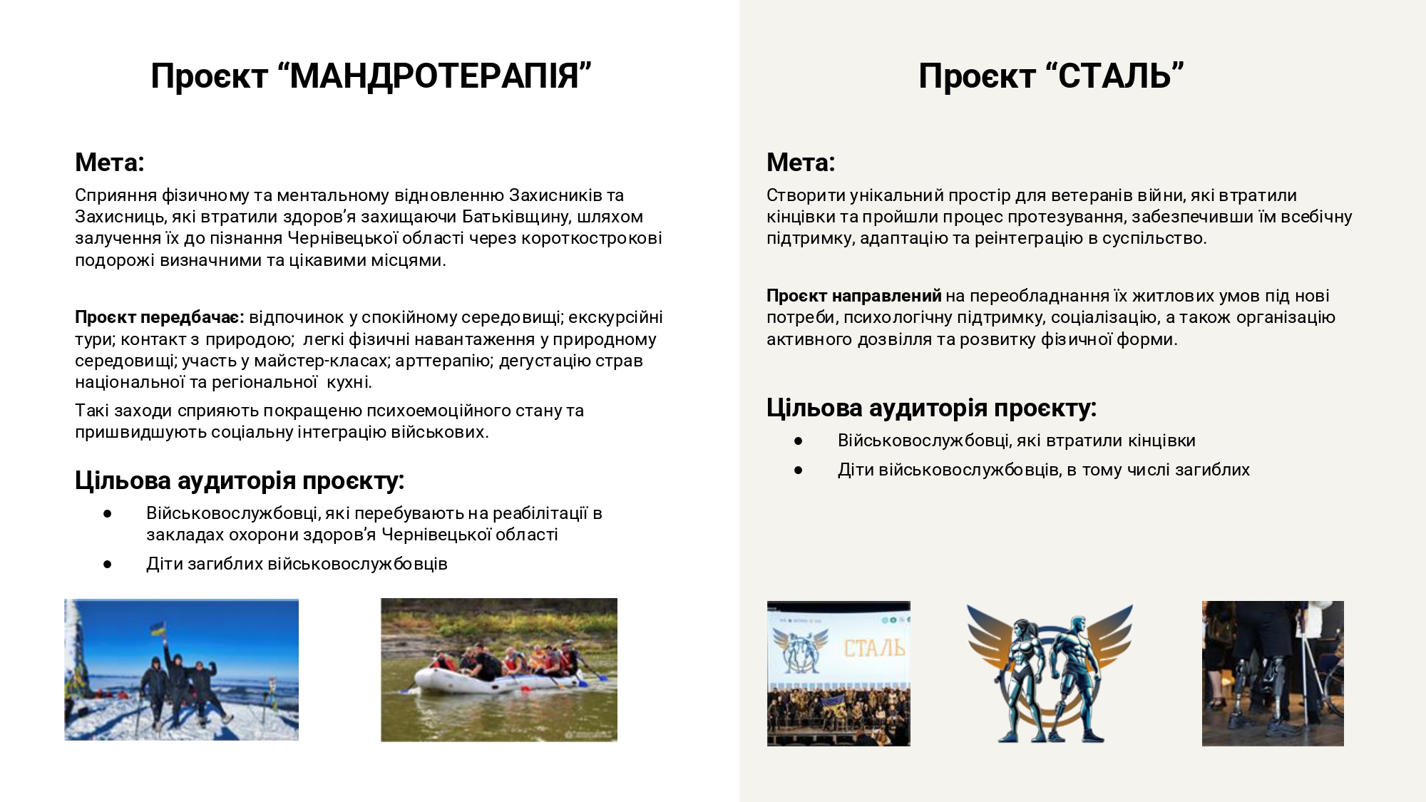 Програма охоплює соціальну, психологічну, економічну та освітню підтримку для Захисників, Захисниць і їхніх родин, сприяючи їхній адаптації та інтеграції в мирне життя.