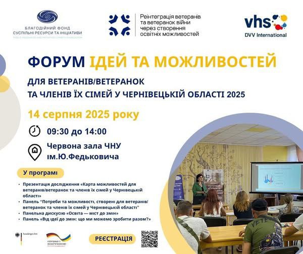 Реєстрація на Форум Ідей та Можливостей для ветеранів/ветеранок та членів їх сімей в Чернівецькій області